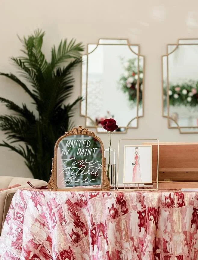 Jamie Peterson and her team did a beautiful job at my daughter’s wedding this summer painting abstract portraits of our guests. Her portrait bar was attractive and approachable and created a little excitement for our friends and family. It was fun to watch them strike a quick pose and then receive a lovely keepsake of Ellis and Hank’s wedding.